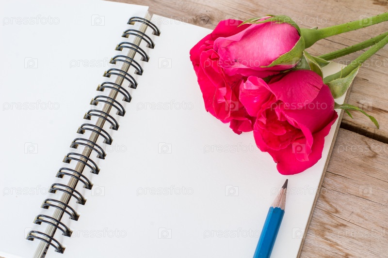 Красные розы и блокнот