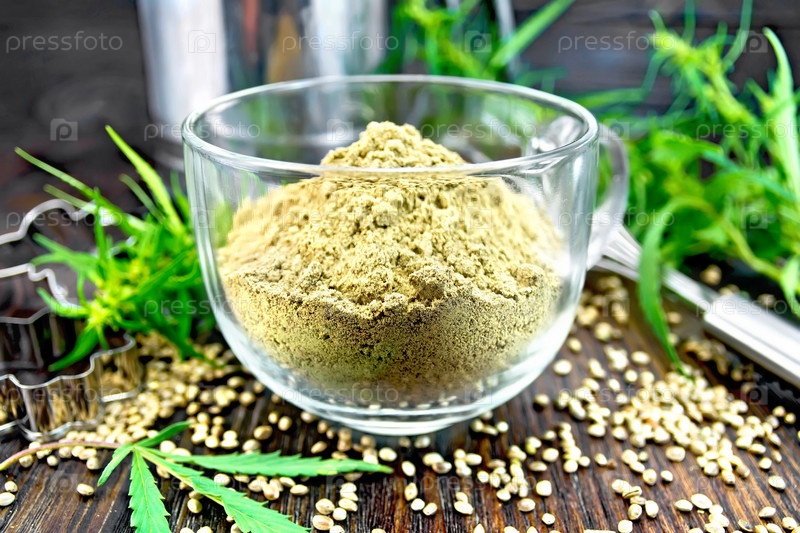 Мука конопляная в стеклянной чашке