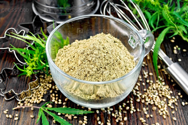 Мука конопляная в стеклянной чашке