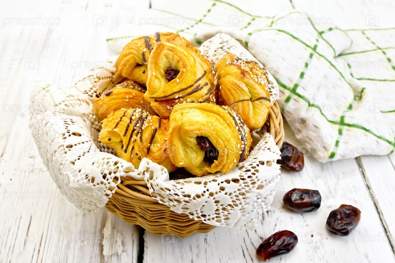Печенье с финиками в плетеной корзине