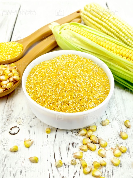 Кукурузная крупа в чаше с початками
