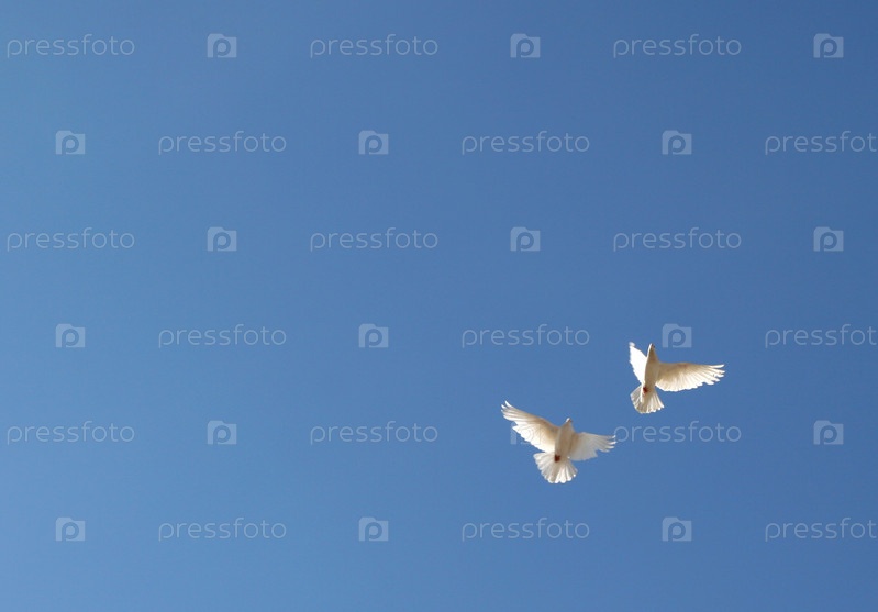 Белые голуби в голубом небе