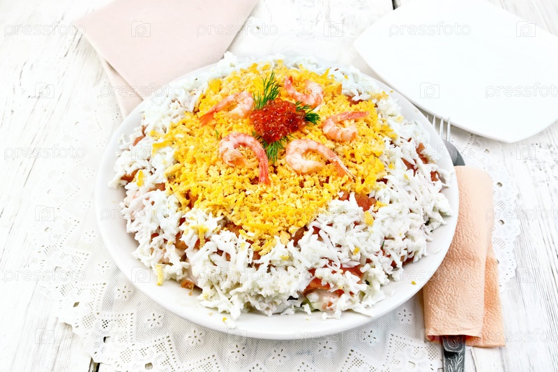 Салат из лосося и морепродуктов