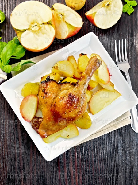 Утиная ножка с яблоком и базиликом