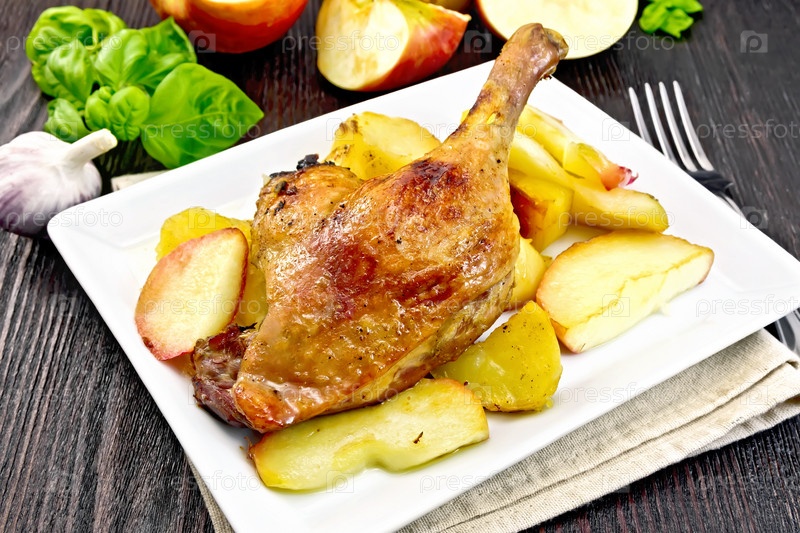 Утиная ножка с яблоком и базиликом