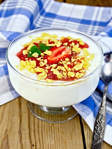 Десерт молочный с клубникой и хлопьями