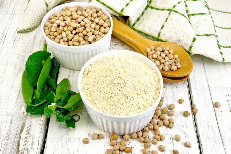 Мука нутовая в чаше на светлой доске