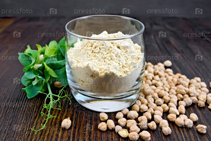 Мука нутовая в стакане с горохом на доске