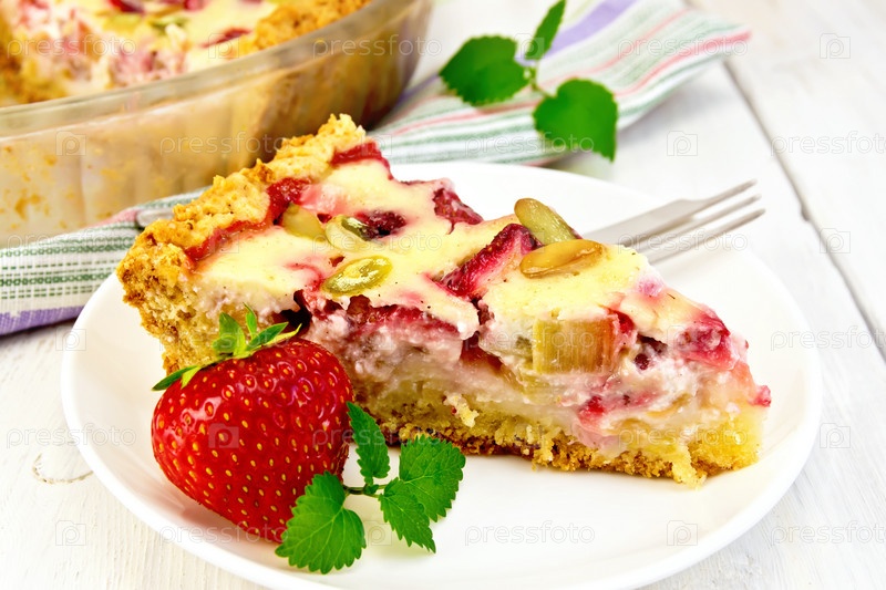 Пирог клубнично-ревеневый со сметанным кремом