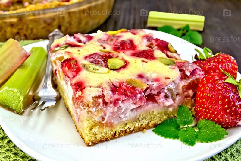 Пирог клубнично-ревеневый со сметанным кремом