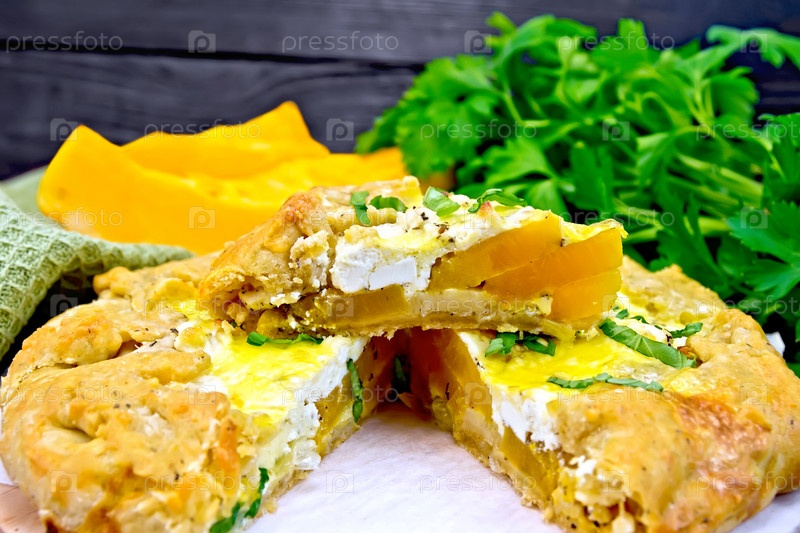 Пирог с тыквой и сыром на доске