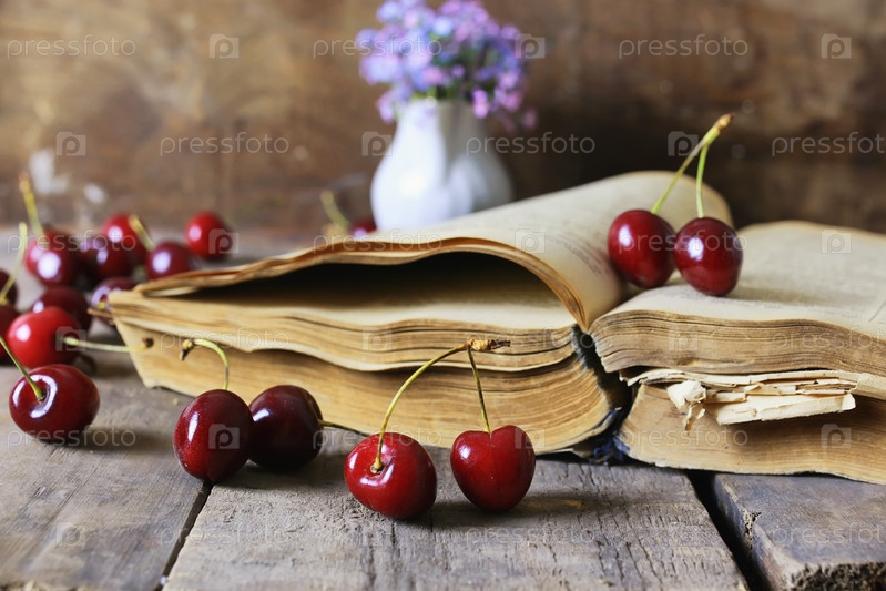 Старая книга и вишни