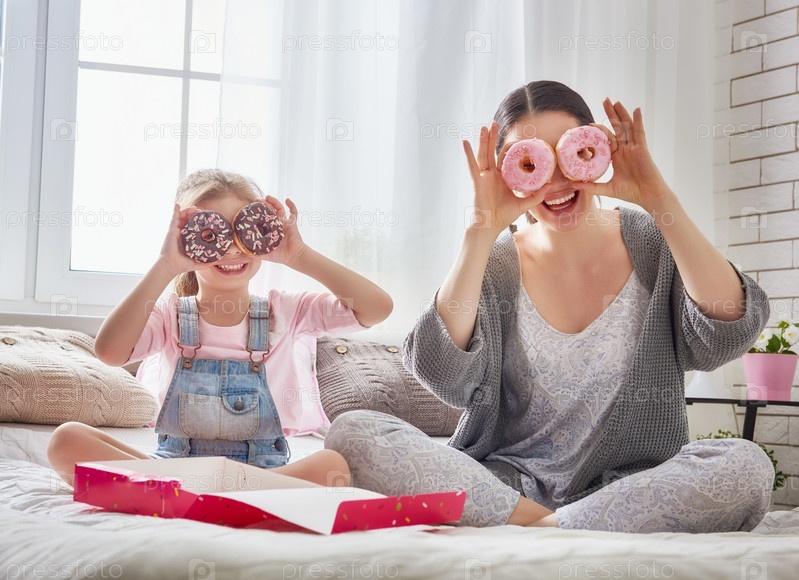 Мать и дочь с пончиками