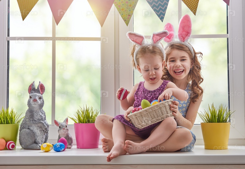 Зайчики с пасхальными яйцами