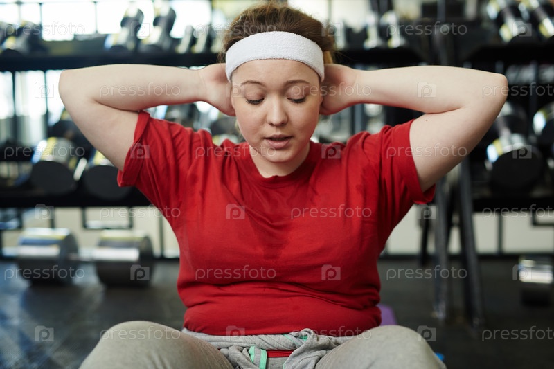 Женщина с лишним весом в спортзале