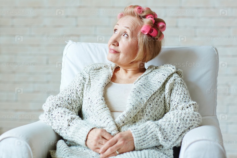 Мечтательная пожилая женщина на кресле