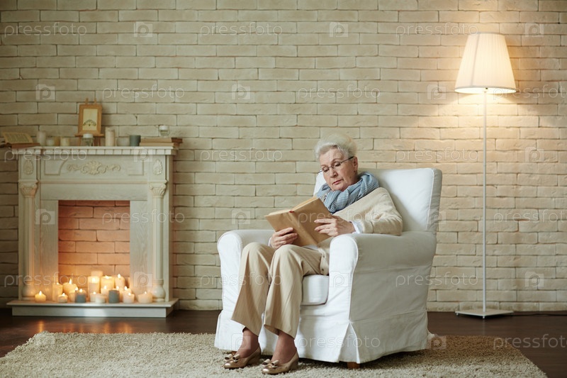 Пожилая женщина, сосредоточена на чтении