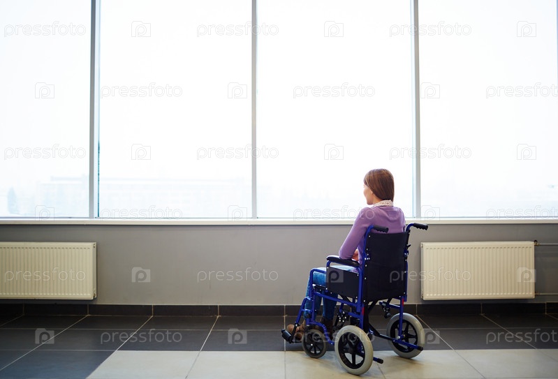 Задумчивая женщина в инвалидной коляске