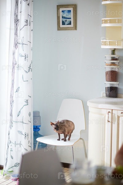 Сфинкс кошка в интерьере кухни
