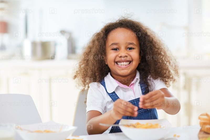 Смешная девочка со спагетти