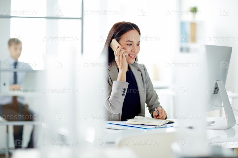 Молодой менеджер делает звонки