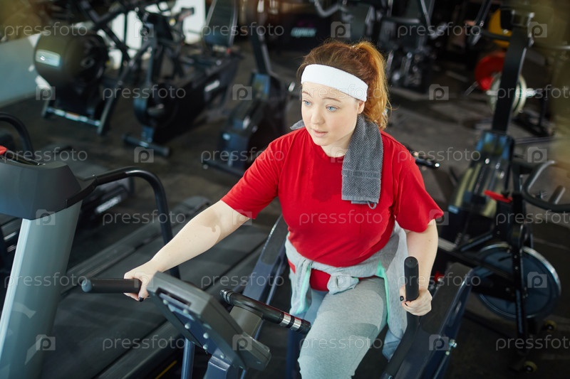 Полная девушка на тренировке
