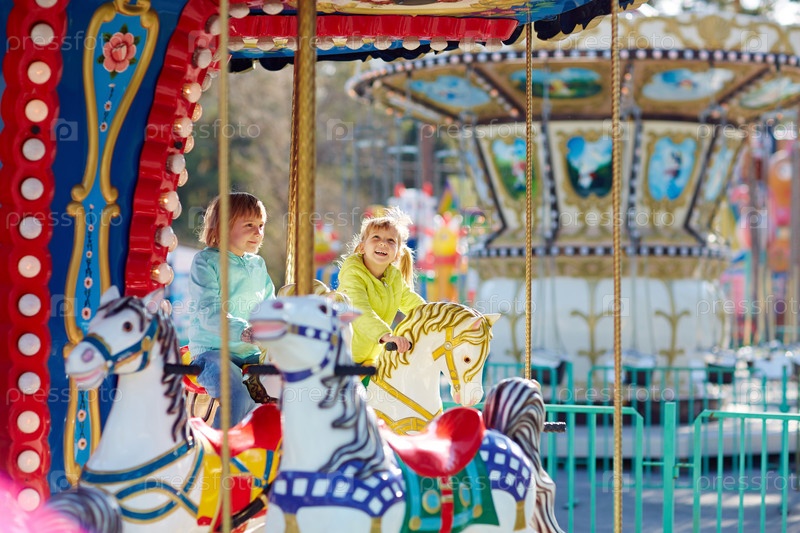 Счастливые сестры на карусели