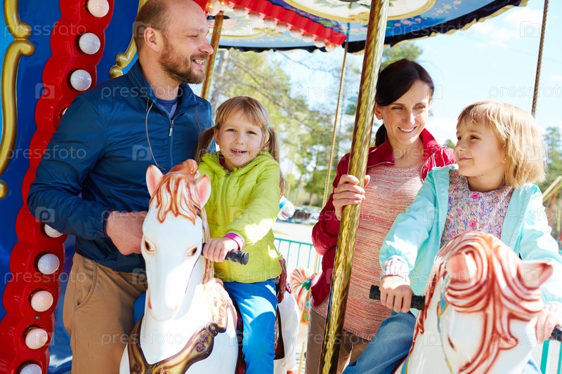 Красивая семья на карусели
