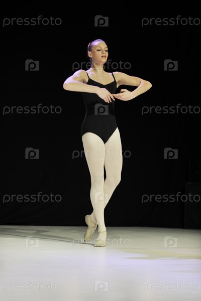 Молодая балерина танцует на сцене, балетная школа