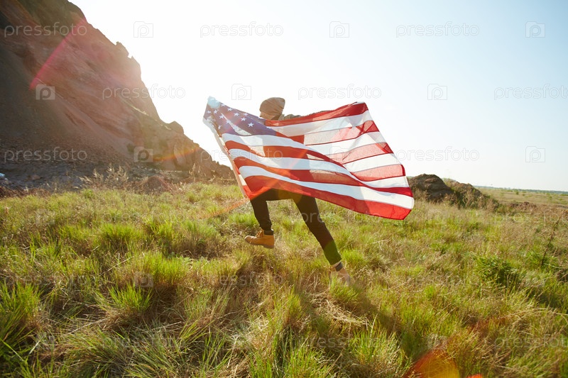 Молодой человек бежит с флагом США