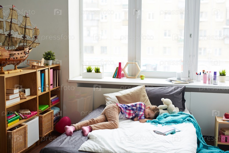 Спащая усталая школьница