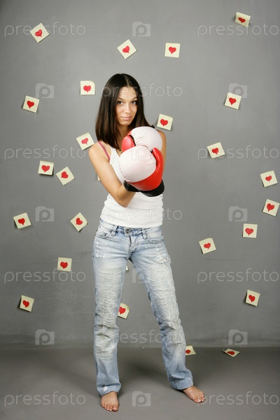 Влюбленная молодая девушка в боксерских перчатках