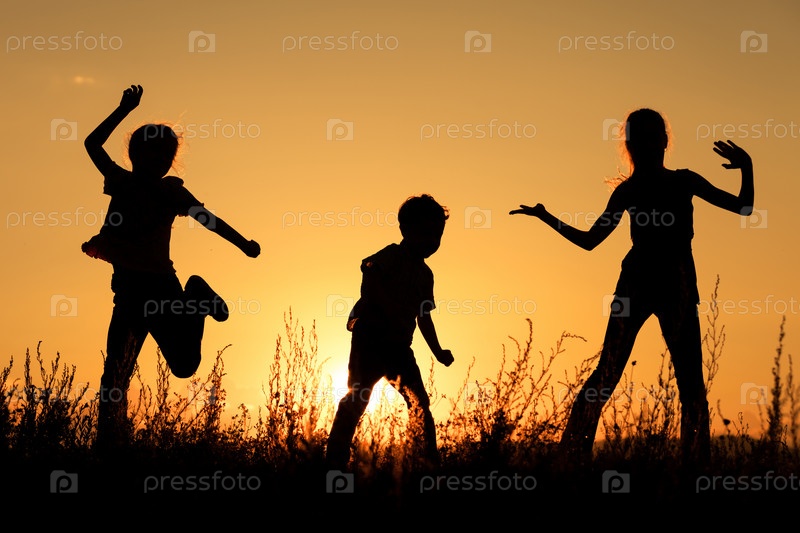 Счастливые дети на закате