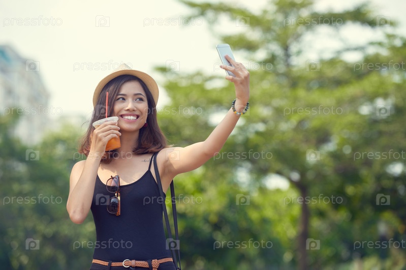 Позирует для селфи