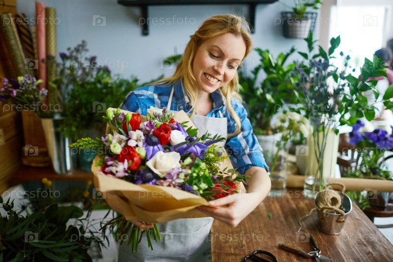 Флорист с букетом