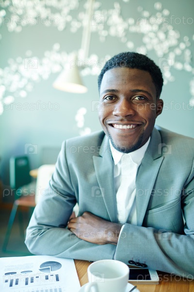 Улыбающийся бизнесмен в кафе