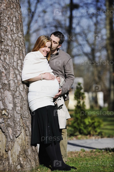 Беременная женщина с мужем на открытом воздухе