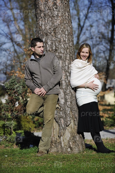 Беременная женщина с мужем на открытом воздухе