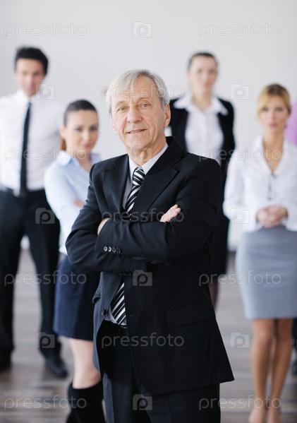 Деловой человек на фоне своих коллег в офисе