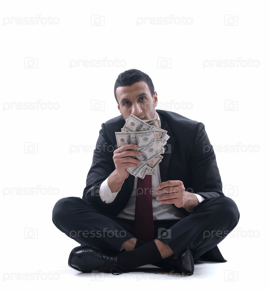 Портрет делового человека с деньгами в руке