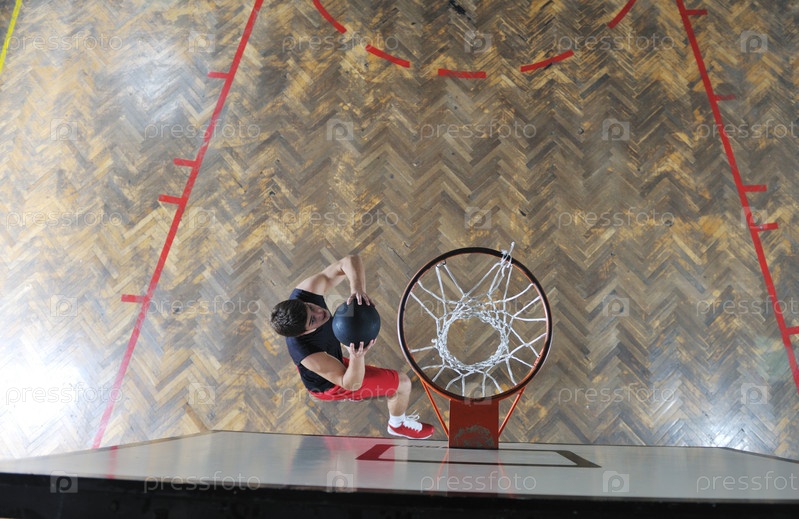 Баскетболист с мячом в спортивном зале