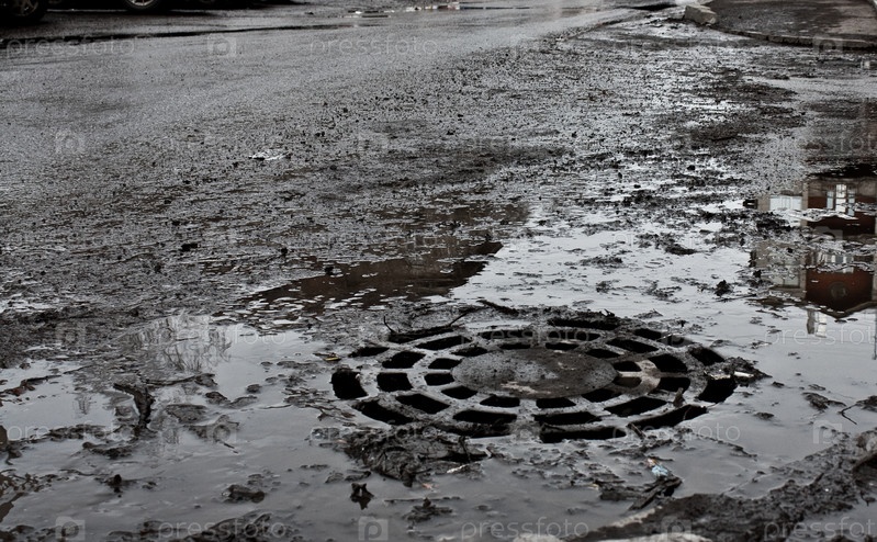 Грязная дорога с канализационным люком