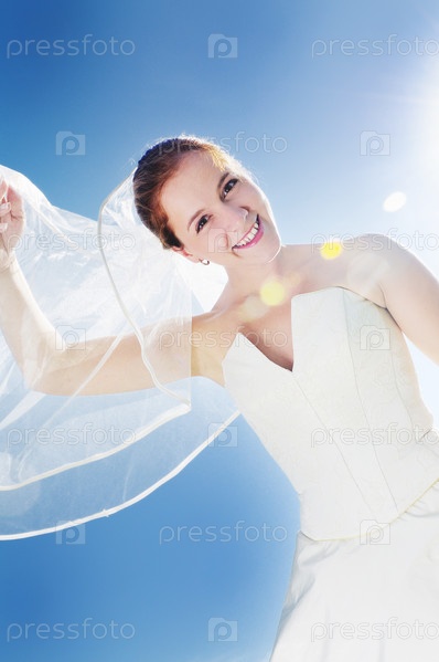 Счастливая молодая красивая невеста развлекается после свадебной церемонии