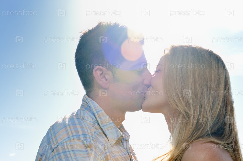Счастливые жених и невеста гуляют по полю на закате после свадебной церемонии