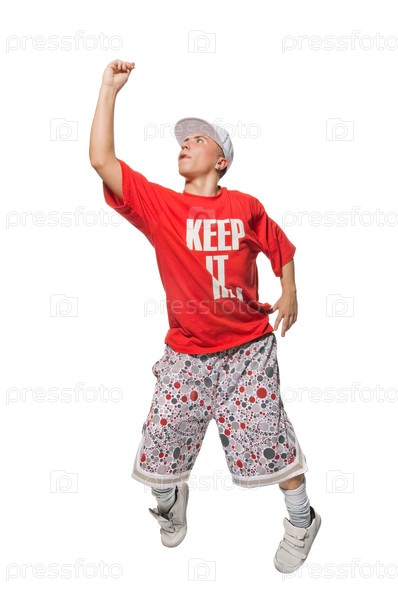 Парень танцует на белом фоне