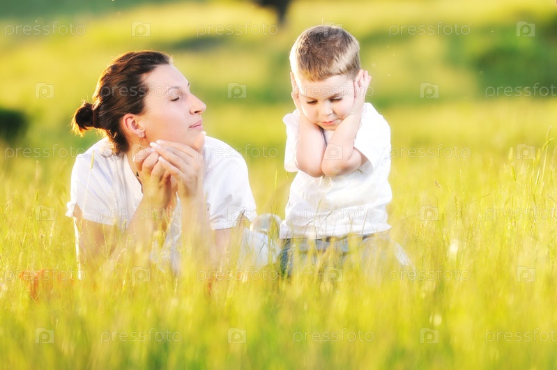 Счастливая молодая мать с маленьким сыном на открытом воздухе