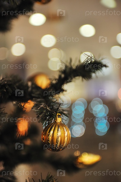 Рождественские украшения на елке в торговом центре