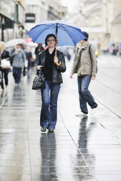 Молодая женщина на прогулке под зонтом