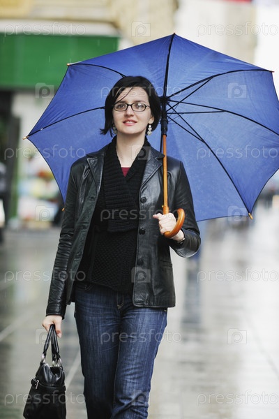 Молодая женщина на прогулке под зонтом
