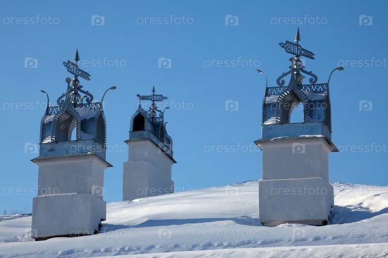 Крыша старого здания с современными метеорологами, Вологодский кремль, Россия